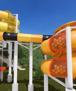 What’s with all the buzz?  Because The Hive is the first waterslide of its kind in the entire world!  Experience extreme positive G-forces as you fly through 720 degree helixes in two massive beehives, complete with translucent effects and a hollow spiral enclosure that is open to the sky.