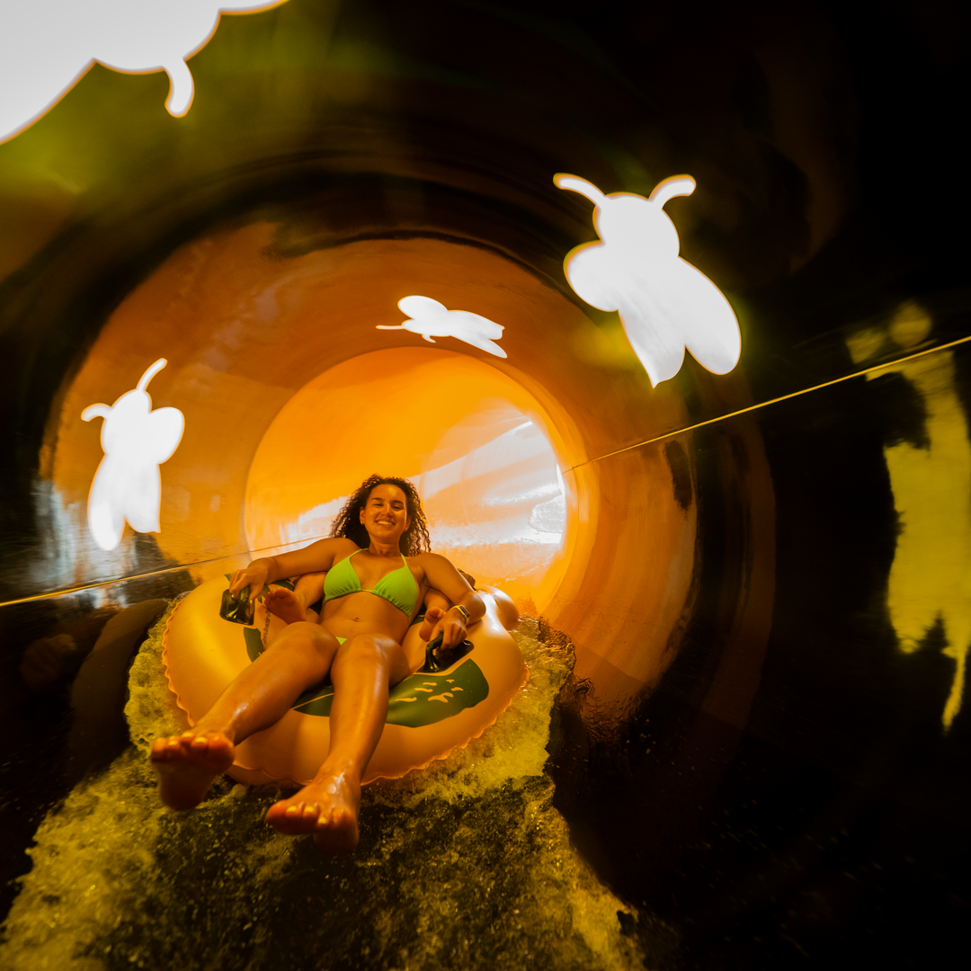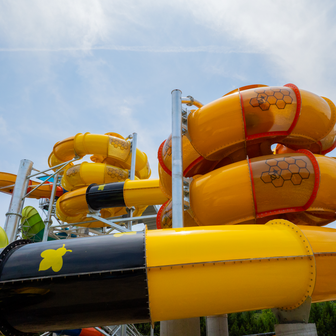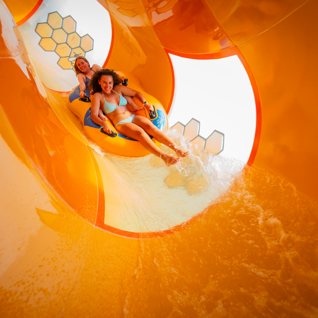 What’s with all the buzz? Because The Hive is the first waterslide of its kind in the entire world! Experience extreme positive G-forces as you fly through 720 degree helixes in two massive beehives, complete with translucent effects and a hollow spiral enclosure that is open to the sky.