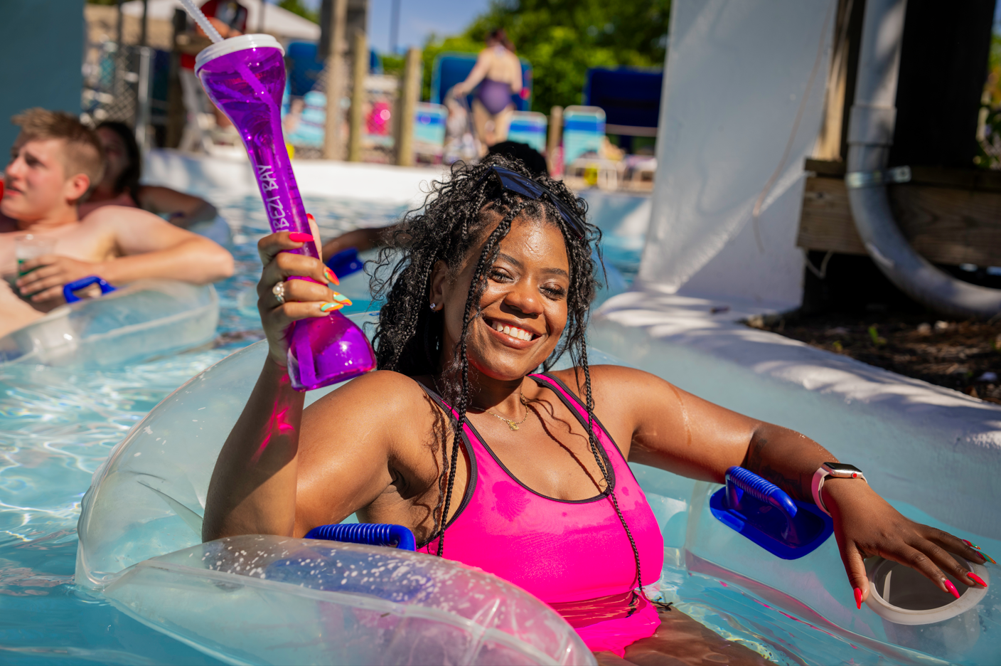 Welcome to Zoombezi Bay's 21+ experience! Start out at The Sandbar, our walk-up and swim-up bar, which features a heated lounge pool complete with in-water seating. Ready for the ultimate relaxation? Grab a tube and your favorite adult beverage and float along our 700-foot, 160,000-gallon heated lazy river!