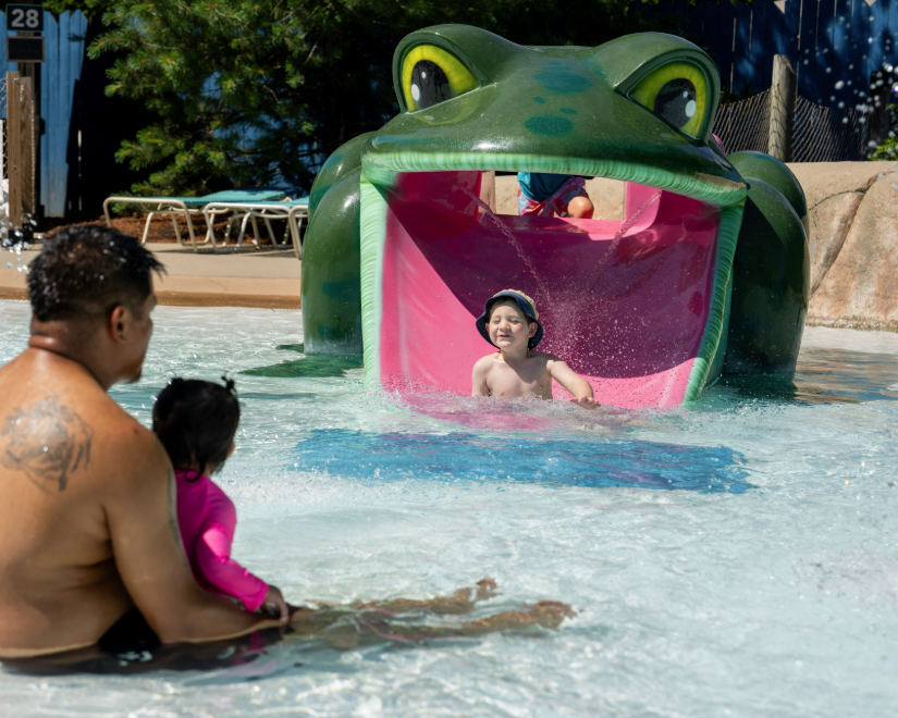 Toddlers can experience new interactive water features, fun aquatic animals, and small waterslides that are perfect for waterpark fans in-training. Caregivers can relax in new lounge chairs in the shade–perfect for those hot summer days!